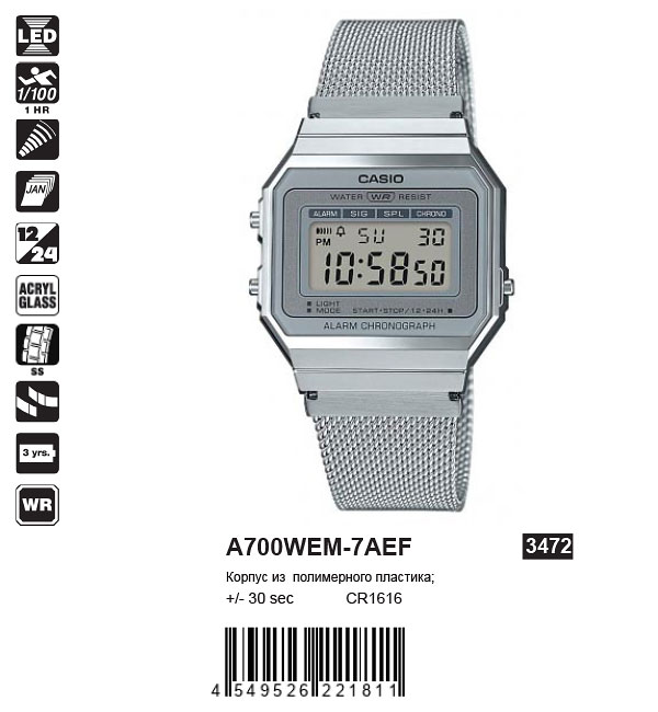 Точность хода: +/- 30 sec; Тип батарейки: Тип батарейки: CR1616.