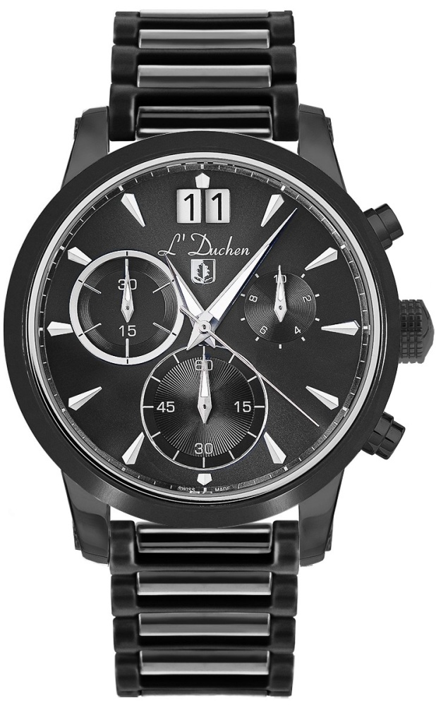 Завинчивающаяся задняя крышка помогает обеспечить повышенную водостойкость часов, которая равна 10 атмосфер. Безель модели и центральные звенья браслета изготовлены из высокотехнологичной керамики. Это современный материал с натуральным блеском, который практически не царапается и дарит приятные тактильные ощущения при использовании, быстро достигая комфортной температуры тела. Браслет надежно крепится к корпусу с помощью винтов и дополнен застежкой – клипсой с двумя боковыми кнопками. На застежку и рельефную заводную головку нанесен логотип бренда L’Duchen в виде дубового листа – символа мудрости и долговечности.