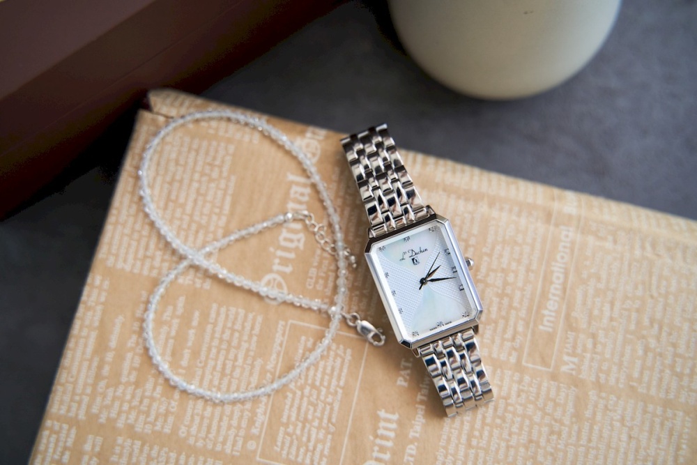 Традиционный рисунок Clous de Paris («парижские гвозди») и пластины из натурального перламутра — композиция на циферблате модели серии Pyramide напоминает очертания песочных часов, символа времени и его быстротечности. Корпус прямоугольной формы сделан из нержавеющей стали с зеркальной полировкой. Особое украшение модели — сапфировое стекло с гранями и волшебной игрой света на них. Маркеры часов выполнены из фианитов, надежно закрепленных на циферблате: каждый кристалл в индивидуальной рамке с полировкой, которая отражает его блеск. Для лаконичной заводной головки дизайнеры бренда выбрали удобную в использовании форму. Браслет часов и застежка-бабочка сделаны из гипоаллергенной нержавеющей стали.Традиционный рисунок Clous de Paris («парижские гвозди») и пластины из натурального перламутра — композиция на циферблате модели серии Pyramide напоминает очертания песочных часов, символа времени и его быстротечности. Корпус прямоугольной формы сделан из нержавеющей стали с зеркальной полировкой. Особое украшение модели — сапфировое стекло с гранями и волшебной игрой света на них. Маркеры часов выполнены из фианитов, надежно закрепленных на циферблате: каждый кристалл в индивидуальной рамке с полировкой, которая отражает его блеск. Для лаконичной заводной головки дизайнеры бренда выбрали удобную в использовании форму. Браслет часов и застежка-бабочка сделаны из гипоаллергенной нержавеющей стали.
