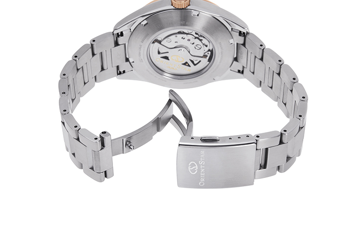 Премиальная новинка из Японии – элегантные часы в городском стиле в лучших традициях ORIENT STAR. Прочный и тонкий корпус из нержавеющей стали, легко читаемый циферблат с окошком даты и индикатором запаса хода до 50 часов. Эти часы отличаются изысканными деталями, отполированными вручную до зеркального блеска в технике Заратцу, плавными линиями 42-миллиметрового корпуса, защищенного сапфировым стеклом, и массивным, трехзвенным браслетом.