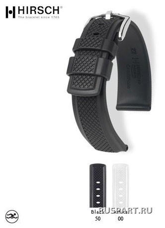 HIRSCH Premium Caoutchouc - лучшее сырье для функциональных ремешков. Абсолютно водонепроницаемый, держащий форму, стойкий на разрыв и устойчивый к внешним воздействиям, таким как УФ излучение, химикаты, экстремальная жара или холод. Идеально подходит для людей с чувствительной кожей. Угловатый дизайн. Тисненный рисунок под карбон. Интегрированный фиксатор шлевки. Выгнутый профиль для оптимальной вентиляции. Мощная застежка HIRSCH Active из нержавеющей стали.
